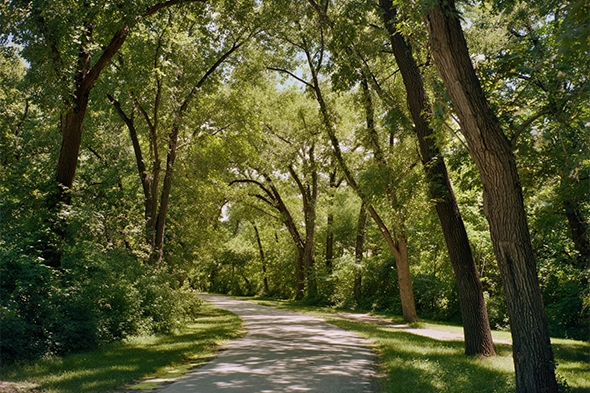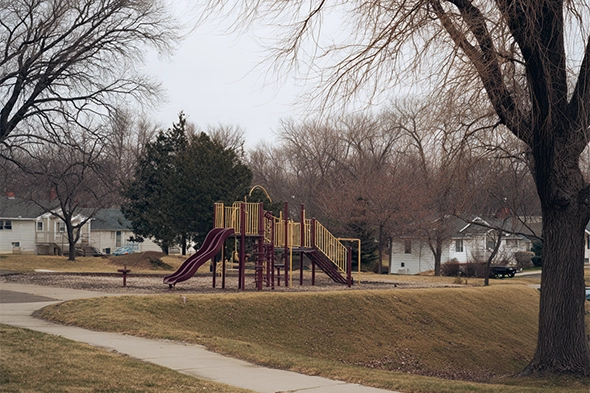 A peaceful neighborhood park with shaded trees, open lawns, and paved paths. Millard families love bringing their dogs here for everyday strolls, training walks, and relaxed outdoor time in a calm suburban setting.