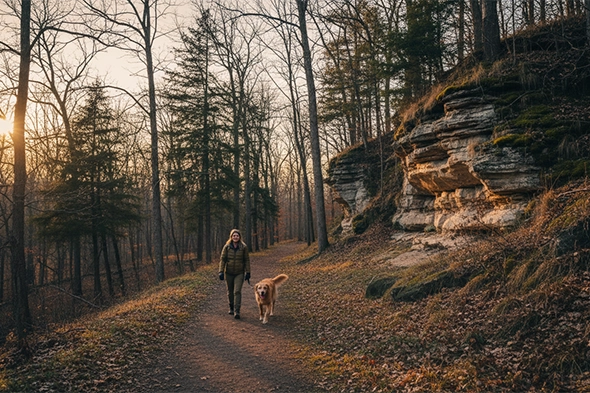 A hidden gem near Plattsmouth with wooded trails, bluff views, and a peaceful Platte River valley feel. It’s perfect for steady leash walks, nature breaks, and a quick reset when your pup needs fresh air and new sights.