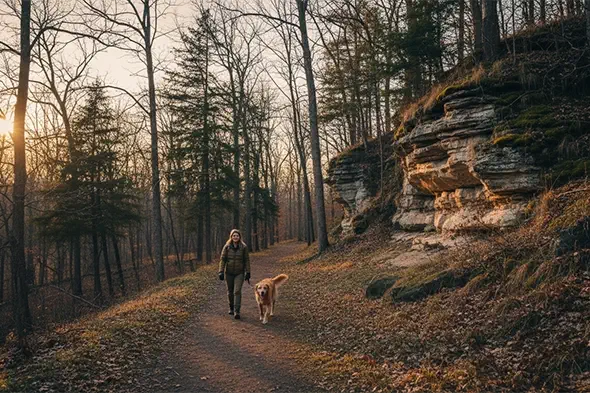 A local favorite for quick walks and community vibes, this park offers well-maintained green space and a peaceful atmosphere for a leashed stroll with your dog.